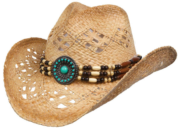 Beaded hatband with turquoise concho